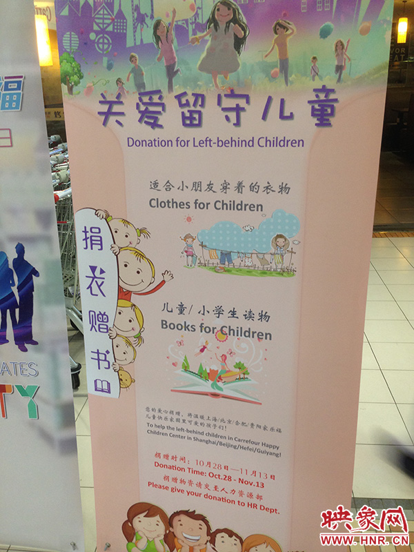 【映象網(wǎng)訊】2016年10月28日,首個(gè)“員工多樣,家樂多?!奔覙犯?guó)際員工多樣化日活動(dòng)在鄭州家樂福金水店舉行,同時(shí)啟動(dòng)的還有為期兩周的“關(guān)愛留守兒童”捐衣贈(zèng)書活動(dòng)。