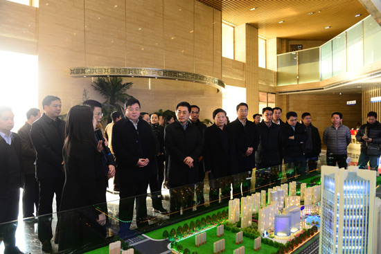 在嘉億互聯(lián)網(wǎng)大廈項目一樓大廳,省委常委、常務(wù)副省長翁杰明一行聽取了新鄉(xiāng)市特色商務(wù)區(qū)、區(qū)域經(jīng)濟(jì)發(fā)展優(yōu)勢以及嘉億互聯(lián)網(wǎng)大廈的運營發(fā)展等相關(guān)情況匯報。