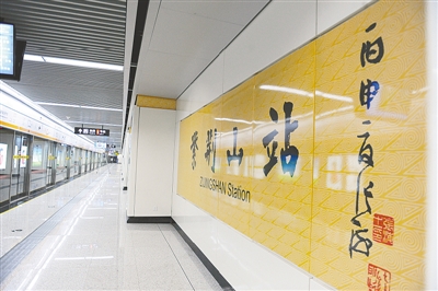 記者昨日走訪地鐵2號線各車站時發(fā)現(xiàn),車站內(nèi)部裝修工作已基本完成,車站站名墻首次采用書法藝術(shù)字體。