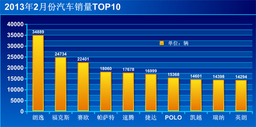 2013年2月份銷量:34889萬(wàn)輛