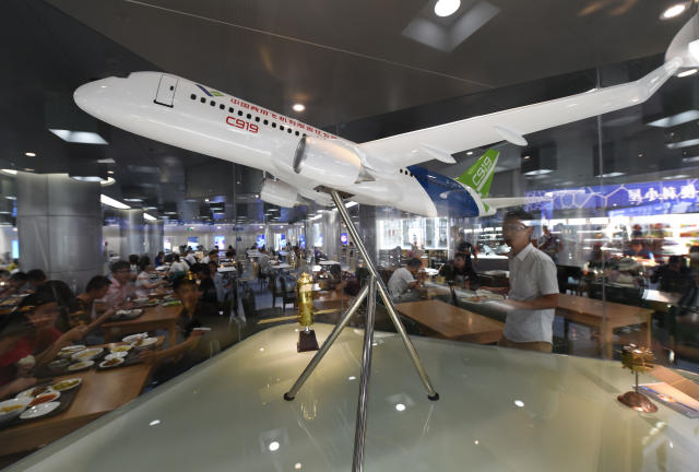 8月29日,在設(shè)計成“航空餐廳”的南航將軍路校區(qū)五食堂,一名用餐學(xué)生從飛機模型展臺邊走過。