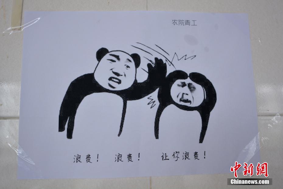 “魔性”表情包告示牌在四川農(nóng)業(yè)大學食堂隨處可見。 四川農(nóng)業(yè)大學供圖