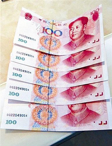 中新網(wǎng)6月19日電 據(jù)香港《星島日報(bào)》報(bào)道,一女子昨(18日)到聯(lián)合道樂富廣場一銀行存款,被揭發(fā)其中14張100元面額人民幣疑是偽鈔,驚動(dòng)警方將其拘捕,連同懷疑“假人仔”帶署調(diào)查,據(jù)悉內(nèi)地近日發(fā)現(xiàn)新一批仿真度極高、鈔票編號(hào)相同假人民幣,香港警方正追查是否有新的“假人仔”流入香港。