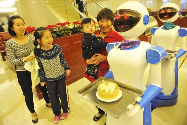 對于餐廳里這兩個服務(wù)員,就餐的顧客都倍感新鮮,從機(jī)器人手中接過食物后,都會和機(jī)器人合影。“老板的創(chuàng)意特別好,給人耳目一新的感覺。我家孩子嚷著叫我也買一個,每天在家里為我們服務(wù)?!鳖櫩托炫空f。
