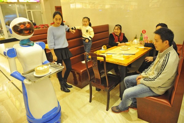 為什么會想到開一家機(jī)器人餐廳?盧迪鈳說,他原先是做電子商務(wù)的,因為做得不好,他一直想轉(zhuǎn)行。一次上網(wǎng)時,他看到昆山開了一家機(jī)器人餐廳,反響非常好。于是他去昆山進(jìn)行了考察。這次考察讓他下了決心,在家人的支持下,他開了這家機(jī)器人餐廳。盧迪鈳告訴記者,他們餐廳里的機(jī)器人會說40句基本用語,如“你的菜到了,請慢用”等。他想下次編程的時候加入寧波話,讓機(jī)器人更親切。