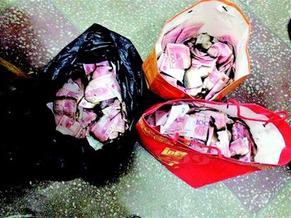 張先生告訴民警,這套房子準備裝修給兒子結(jié)婚用,妻子從銀行取了6萬元現(xiàn)金,其中5萬元放在一個塑料袋里,一萬元放在信封里裝進另一個塑料袋,因家里也要將一些東西搬走,當(dāng)時就清理物品,他沒在意兒子把柜子里裝錢的塑料袋當(dāng)垃圾扔到垃圾桶里去了。當(dāng)?shù)弥芰洗蝗舆M了垃圾桶,這可把張先生急壞了,他趕忙下樓尋找,其中放有一萬元的塑料袋在垃圾桶里找到了。