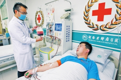 “上午8點半開始采集,3個小時順利結束?!弊蛱焐衔纾瑏碜越棺髑哧柕?3歲退伍兵張國強,在河南省腫瘤醫(yī)院造血干細胞采集室成功捐獻造血干細胞混懸液194毫升。